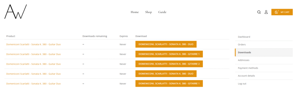 2. Under “Downloads”, you’ll see all your purchased tab files.