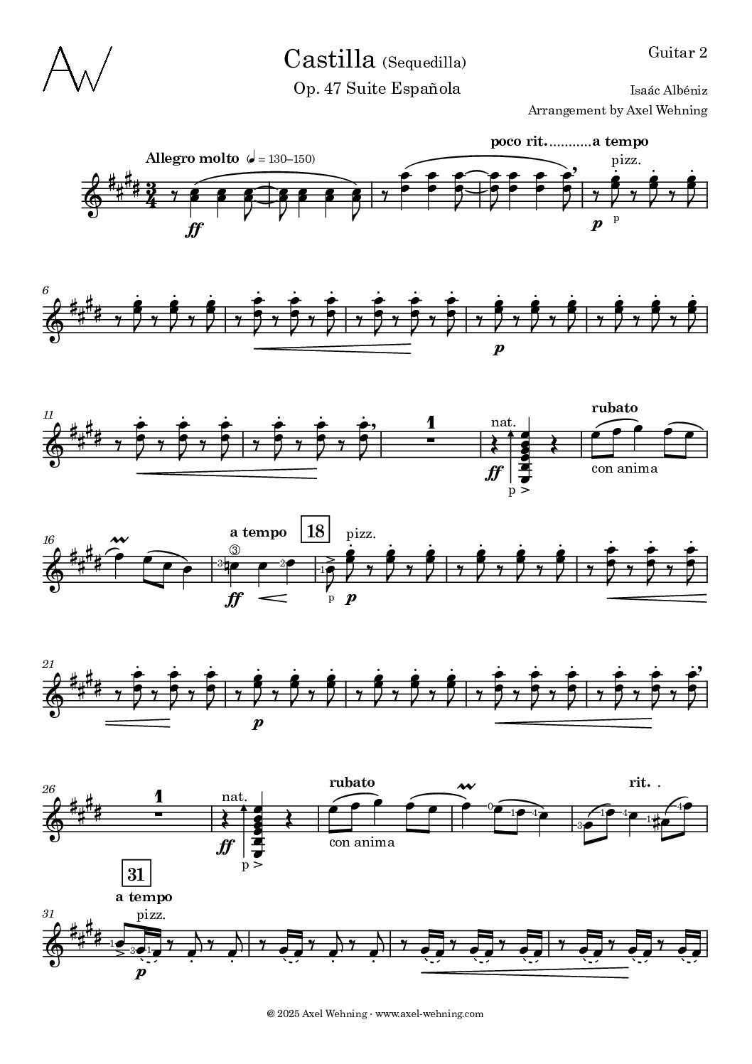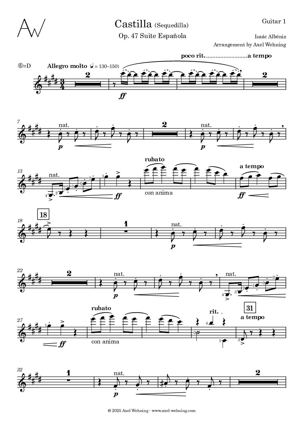 Isaac Albéniz – Castilla – for four guitars